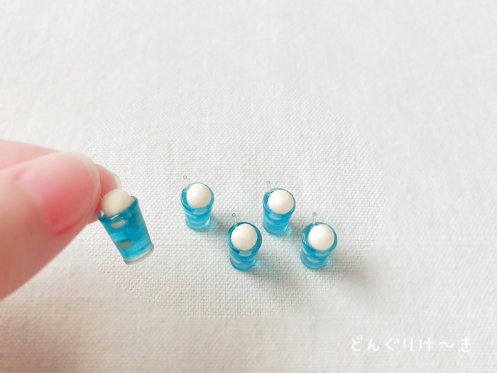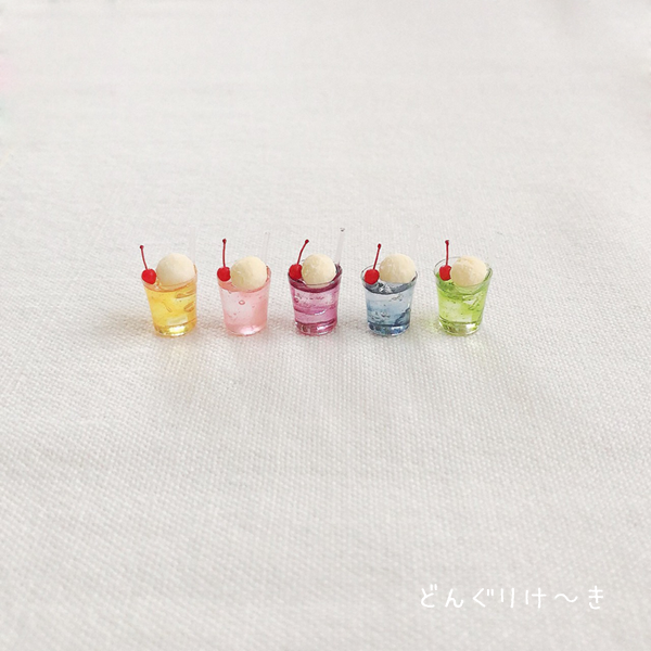 5種類の #クリームソーダ を作りました🥤 左からパンダ、しろくま、うさぎ、ねこ、カエルになります🍨 グラスの大きさは幅8mm×高さ1.4cmです (12分の1サイズのミニチュアです) #ミニチュアアート展2021