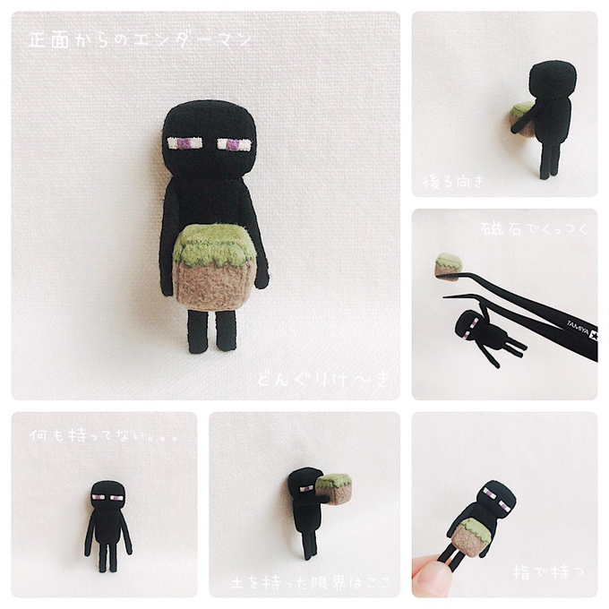 エンダーマンのミニチュアぬいぐるみを作りました 身長は5cm弱です 土と両手に磁石が入っているためエンダーマンに持たせる事が可能です🟫 #Minecraft #マインクラフト #エンダーマン #Miniature