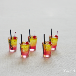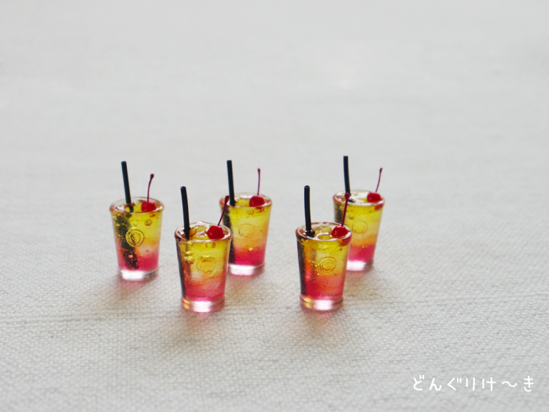 ミニチュアの夕焼けソーダを作りました🥤 下から赤、オレンジ、黄色のグラデーションになっています🍒 グラスの大きさは幅8mm×高さ1.1cmです #ミニチュア #ミニチュアアート展2021