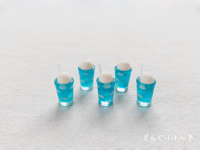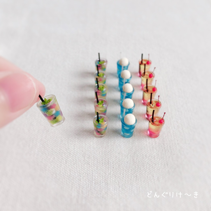 星のソーダ、青空クリームソーダ、夕焼けソーダが⭐完成しました️🥤☀️ (12分の1サイズのミニチュアです) こちらは5セット作りました🍒 #ミニチュアアート展2021 は11月20日(土)AM10時スタートです✨
