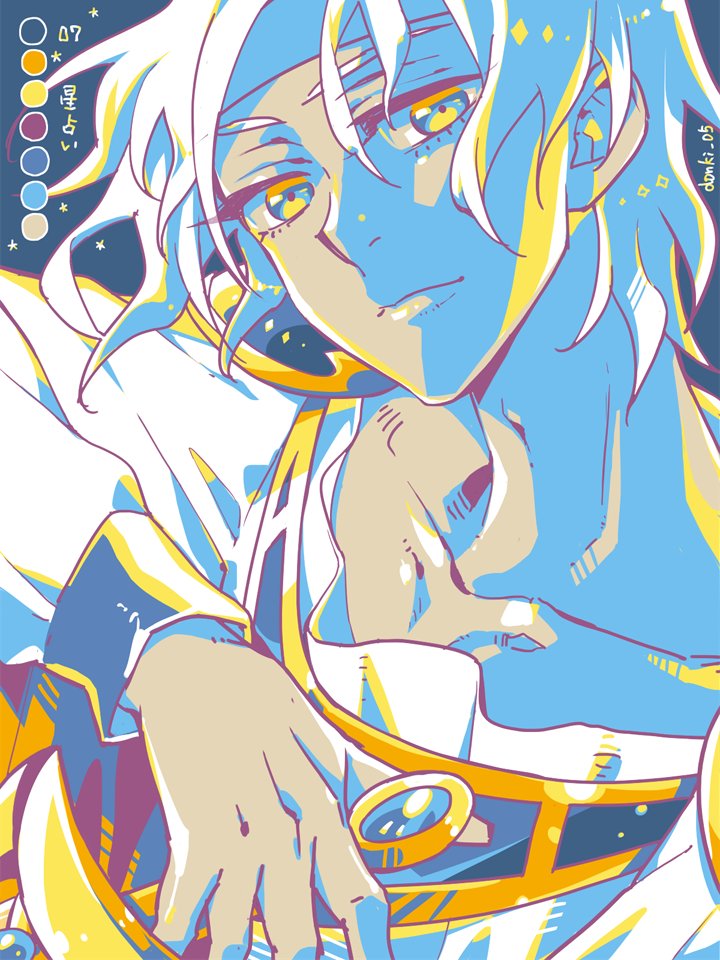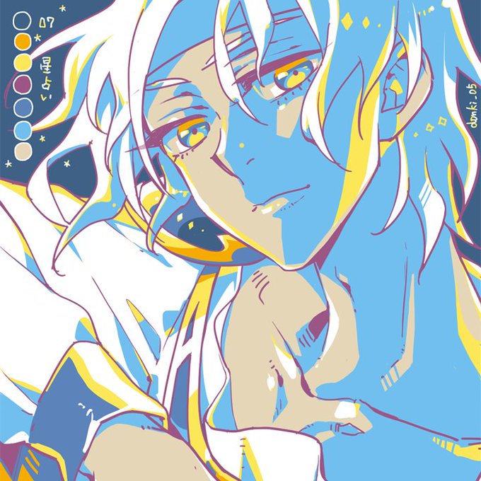 07.星占い 1年前にリプ頂いたカラーパレット、忘れてませんよ…! ということで「星占い」、クールなシェゾさんっぽいカラーだったので! #リプをもらった番号の色を使って絵を描く