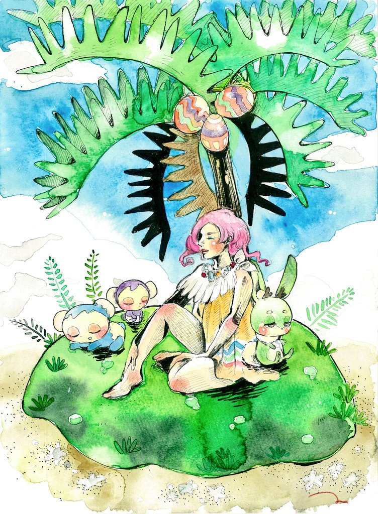 10 39 南のヤシの木の下で #リヴリー #リヴリーファンアート #水彩 21/08/05 12:26