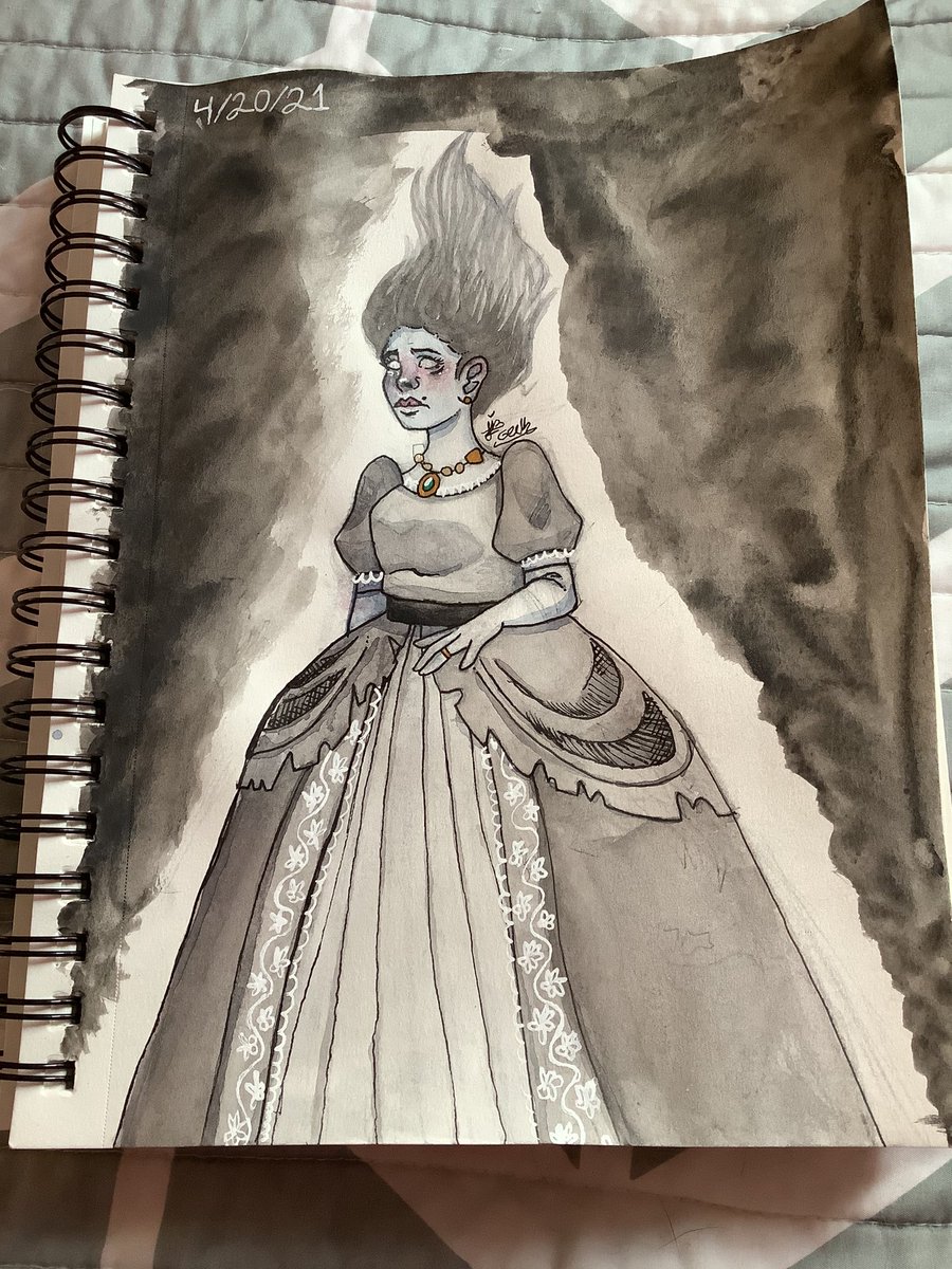 Earlier last month I decided to go ahead and redraw a painting I did back in October of a Victorian ghost 🥀 #art #Inktober #watercolor