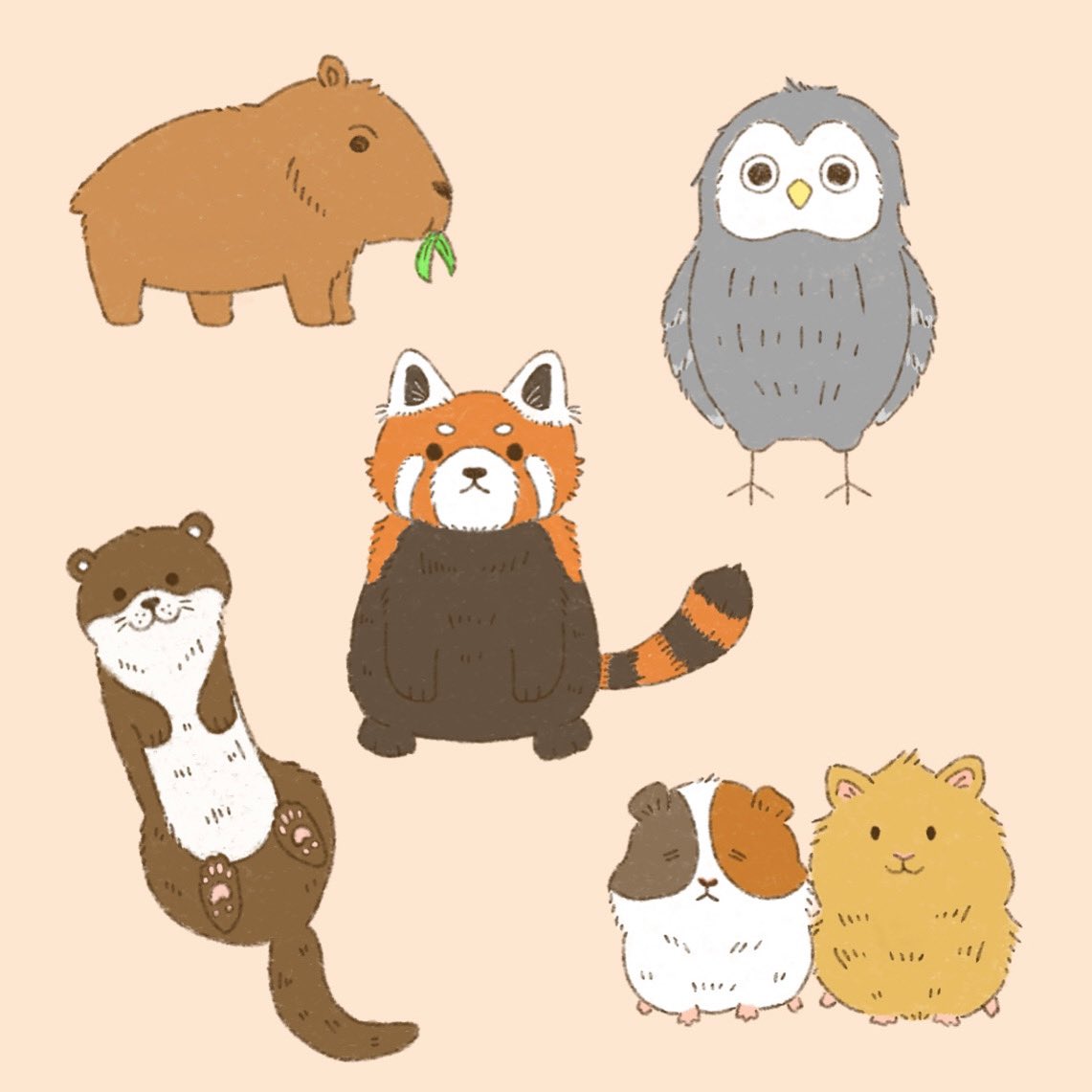 Doodle doodle ⸜(˙◁˙)⸝✐☡ #Illustration #animaldrawing #ArtistOnTwitter #digitalart #doodle #cuteart #ibisPaintX #イラスト好きな人と繋がりたい #絵描きさんと繋がりたい #カワウソ #モルモット #カピバラ #フクロウ #イラスト #かわいい