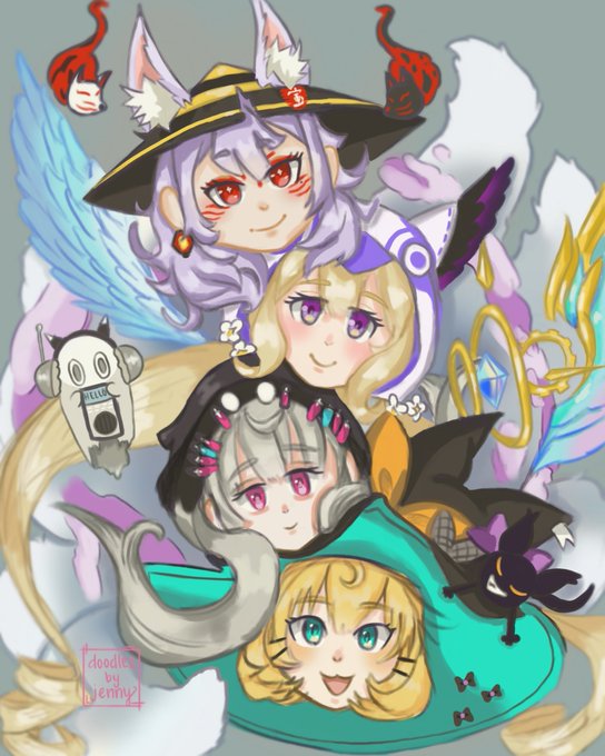 Happy 1st anniversary, Ethyria! Thank you for all the joy you bring every day! 😍 I wanted to stack all the heads but make it look as chaotic as possible because they all got so much stuff 😅 #DrawKosaka #エナーアート #Palouette #Reimural #Endoujin #DrawMillie #Ethyria