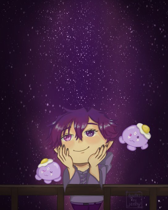 Uki stargazing 🌌. I can’t decide which sky I like better. One is brighter but I couldn’t help make a purple sky 🥰 #VioletAtelier