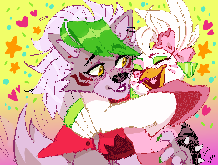 Went back to MS Paint and sketched a lil something. (They are each others support animal.) 🐺💖🐓 #roxannewolf #glamrockchica #fnafsb #fnaffanart