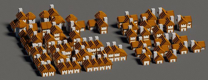 I have completed more medieval fantasy mini-houses for Humans. They will be used for filling up a procedurally generated world map. #wip #magicavoxel #voxelart
