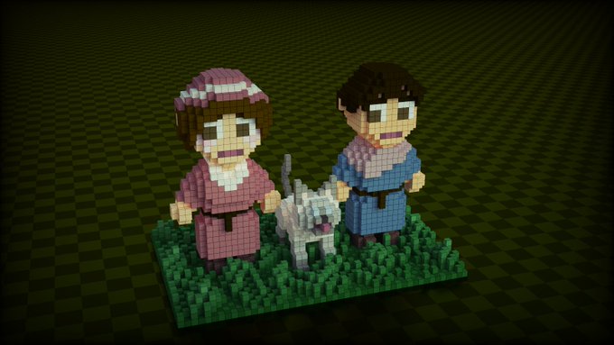 This is the 3rd major iteration of the cottage garden scene. Increased variety of the greenery. Added more characters. Added a muddy road in front of the fence with a grass buffer. Will be expanding towards the chicken yard and potato garden. #magicavoxel #voxelart #pixelart