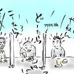 2 18 いつもの店。色気のない話で恐縮だがきょうはカウンターに3人の常連(おっさん)が揃い、マスターを交じえて時事放談を展開。お題(話題)は、奈良県警、新興宗教、自民党圧勝、ヤクルトクラスター、コロナ再燃などなど。それはもう喧々諤々で、一見さんがいたら早々に退散しただろう・・・ #イラスト 22/07/12 21:41