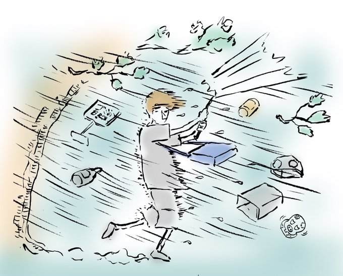 1 22 きょうは敬老の日。自分もそろそろええ齢かも知れないと思うと愕然とする。確かに身体はガチガチだし、何もない所でつまづいたり するが、それでも心は30代のつもりなのだが。台風、あまりにも風が凄まじいので、ベランダ側の雨戸を閉めた。みなさま、お気をつけてください。 #イラスト #エッセイ 22/09/19 20:54