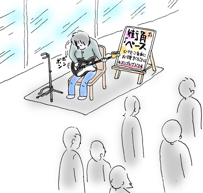 2 21 きょうのもしものコーナー。自分はベース弾きだが、これ、かなり地味だと思う。 #イラスト #エッセイ #ベース 22/10/28 20:58