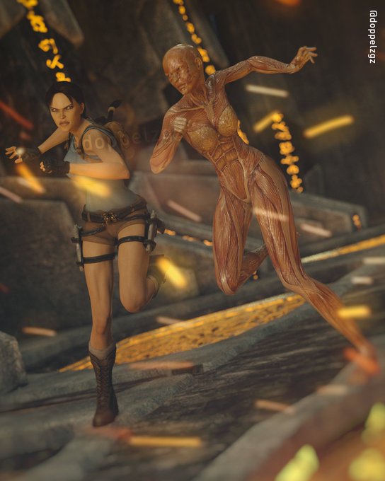 "Too late for abortions now! " New render made trying to recreate the wonderful work of @_Nastia_Croft_ . I hope you like it! #TombRaider #LaraCroft #FanArt #ArtCollab #DazStudio #Iray #IrayRender #CoreDesign