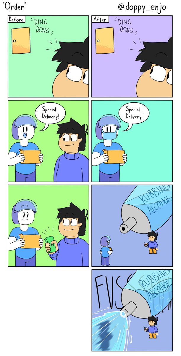 DISCLAIMER: DO NOT SPRAY YOUR DELIVERY PERSON WITH ALCOHOL #comic #ArtistOnTwitter #comicstrip #webcomic