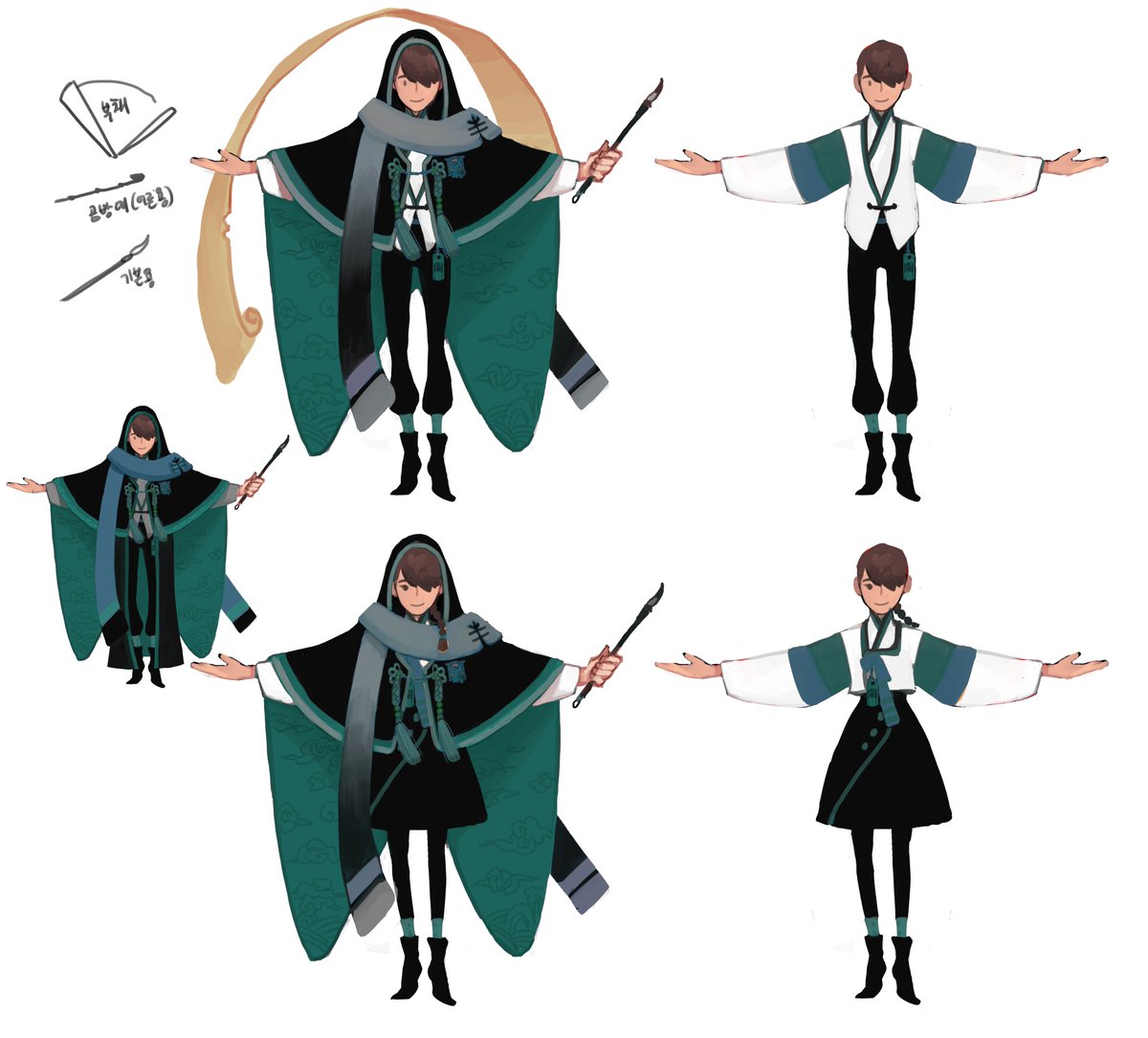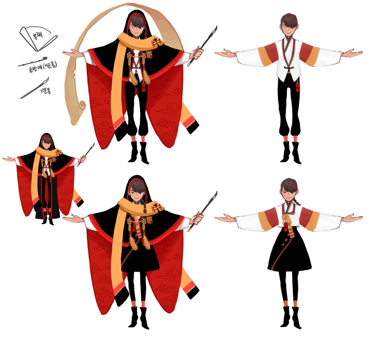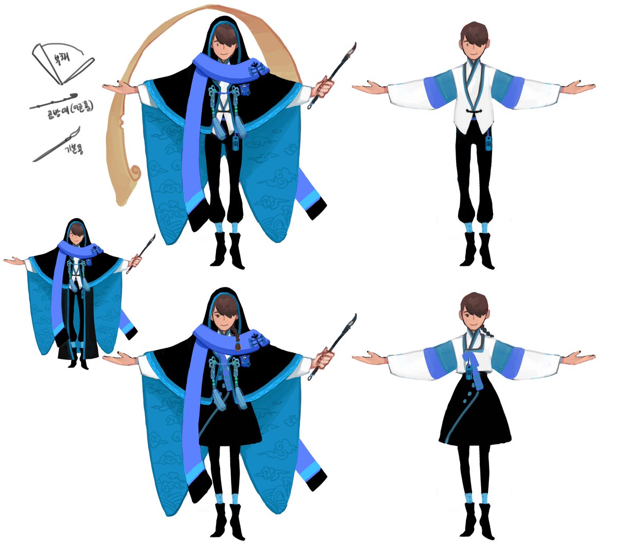 동양에도 서양의 퀴디치같은 스포츠가 있는데, 각 관(기숙사)별 복장. 순서대로 청룡 봉황 백호 현무/ 도양에서는 빗자루대신에 구름을 타고 다닌다.