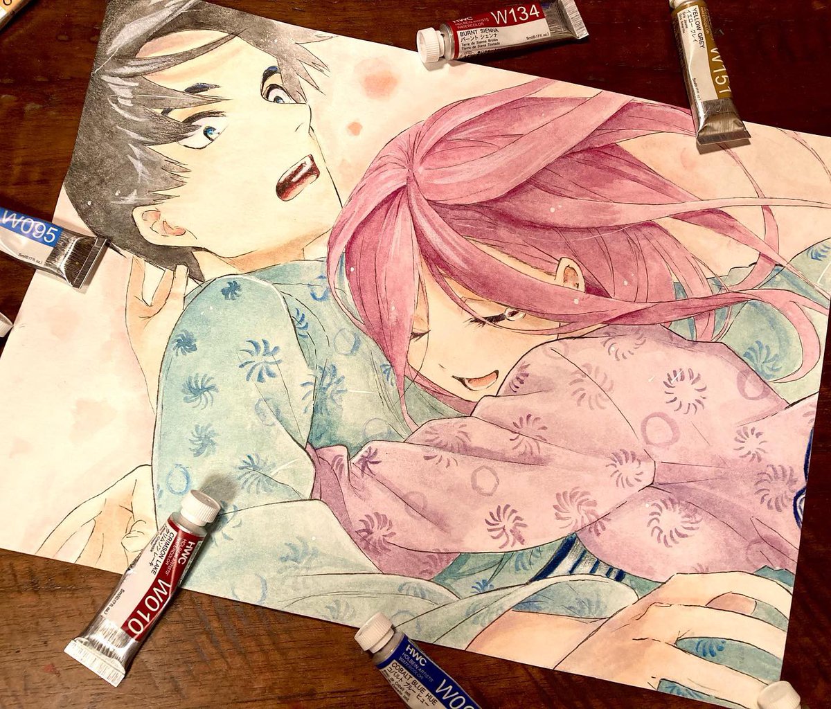 14 44 #スキロー しまくんの気持ちはモヤモヤ みつみの気持ちはスッキリ #スキップとローファー #watercolor 23/07/14 12:42
