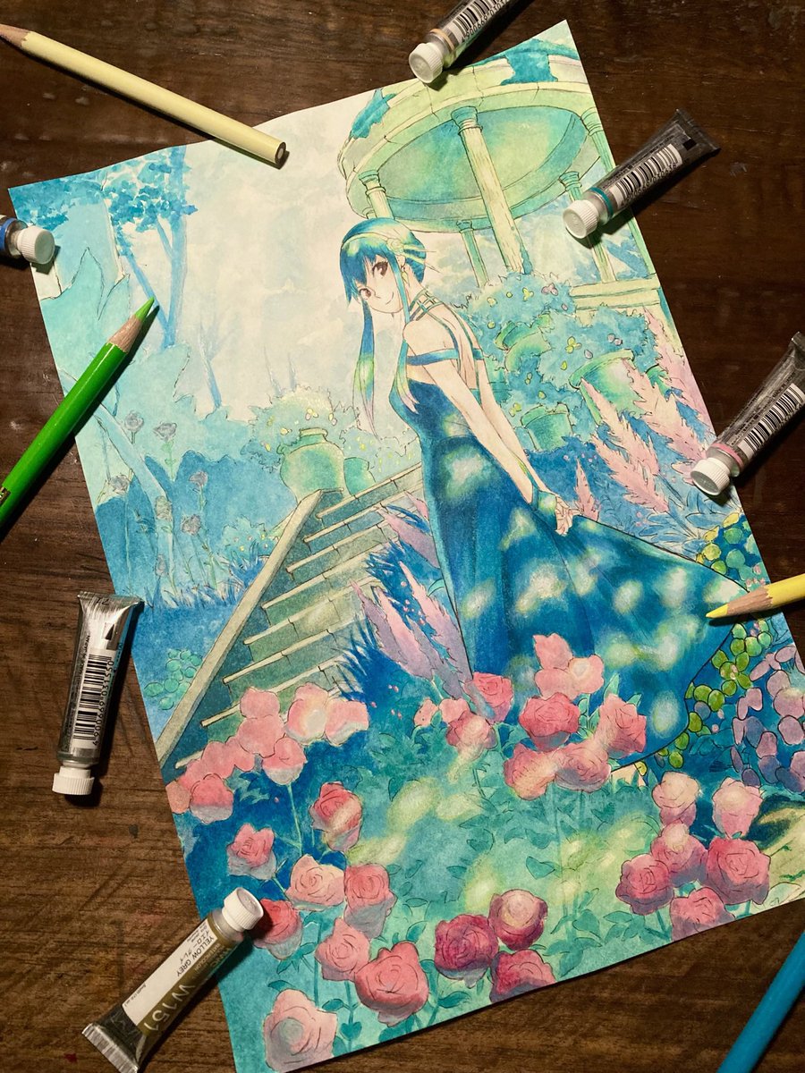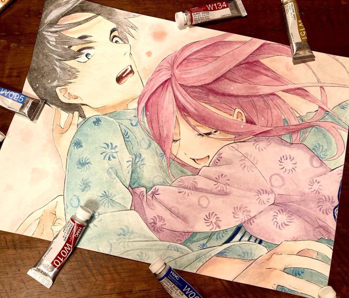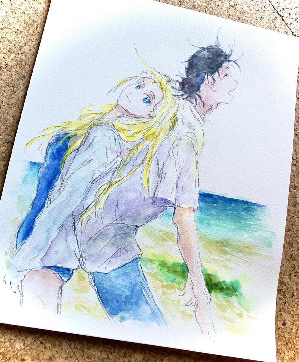 3 37 模写模写 約束のネバーランド ムジカとエマ 先に色塗ってます #約束のネバーランド #エマ #ムジカ #水彩 22/10/22 14:04