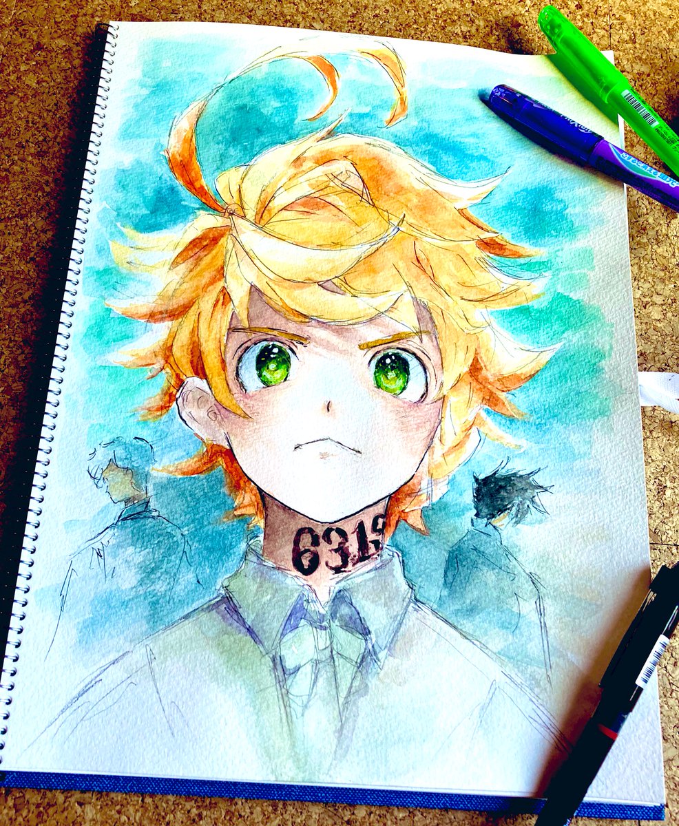 模写模写 約束のネバーランド ムジカとエマ 先に色塗ってます #約束のネバーランド #エマ #ムジカ #水彩