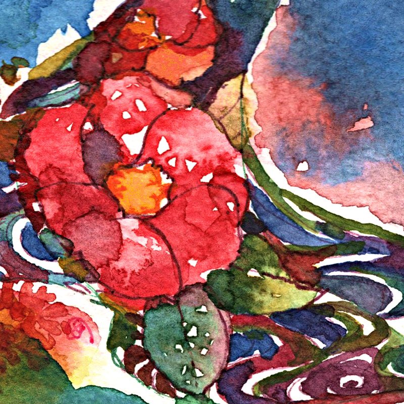 #新しいプロフィール画像 お年賀的絵の 着物の柄。 椿。 観世水。 帯は青海波。 (帯は入らなかった…) #透明水彩 #watercolor twitter.com/dora_yura/stat…