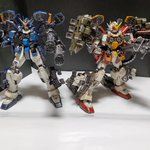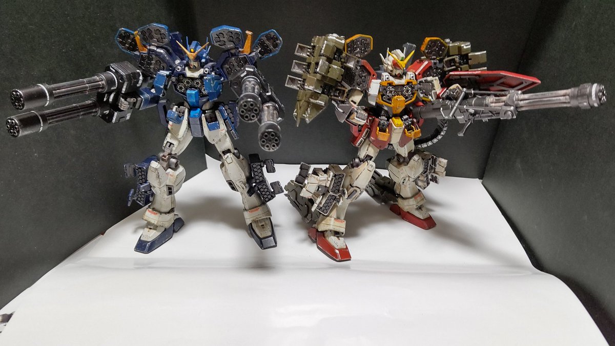 最後は改と揃い踏みです( ˙꒳˙ )イーゲル装備はボリューミーな感じです。色が違うと別機体という印象です( ˙꒳˙ )私が一番やりたかったダブルフルオープンアタックです( ˙꒳˙ )並べたらロマンあふれる光景になりました( ˙꒳˙ ) #ガンプラ #ガンプラの画像貼るとRTされると聞いて