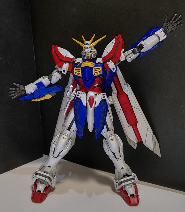 RG ゴッドガンダム、可動範囲が広すぎてデパプリのポーズとらせたら簡単に決まりすぎてヤバいです( ˙꒳˙ )特につま先まで可動できてヤムヤムのポーズが難なく決まります( ˙꒳˙ ) #ガンプラ #ガンプラの画像貼るとRTされると聞いて
