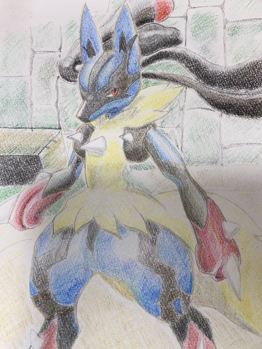#ルカリオ #色鉛筆 #模写 #ポケモン好きさんと繋がりたい ここまで色鉛筆でやったの初めてなんですが、難しいです🥺 ルカリオの色ってどー塗ったら良いんだろ...。