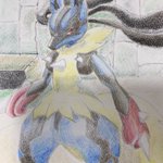 0 8 #ルカリオ #色鉛筆 #模写 #ポケモン好きさんと繋がりたい ここまで色鉛筆でやったの初めてなんですが、難しいです🥺 ルカリオの色ってどー塗ったら良いんだろ...。 20/10/06 22:57