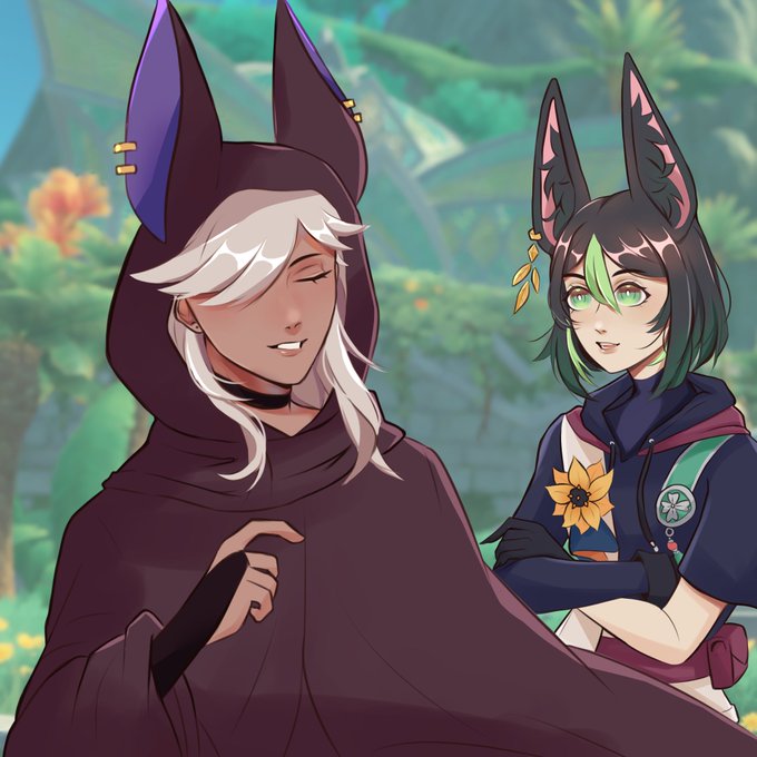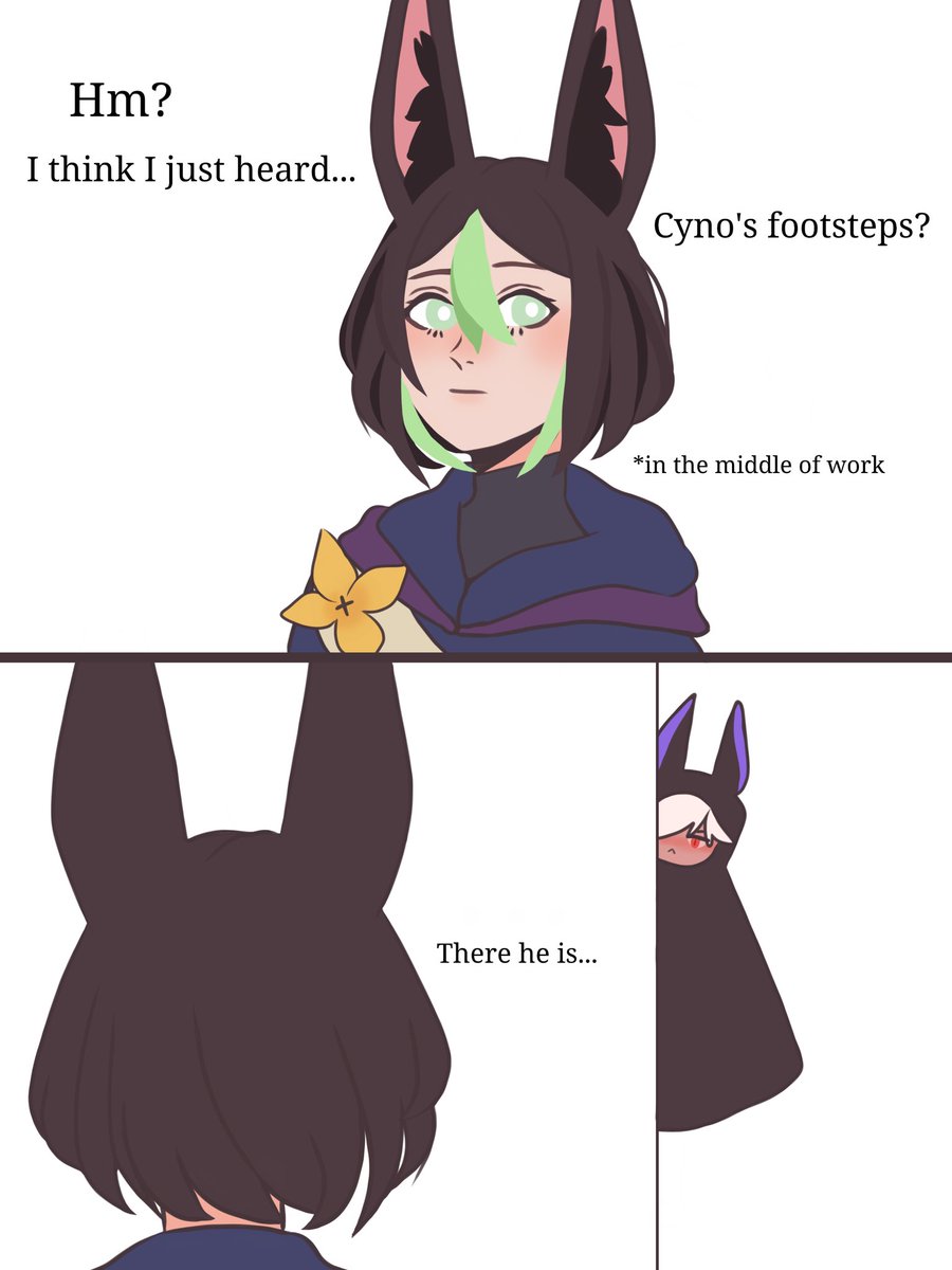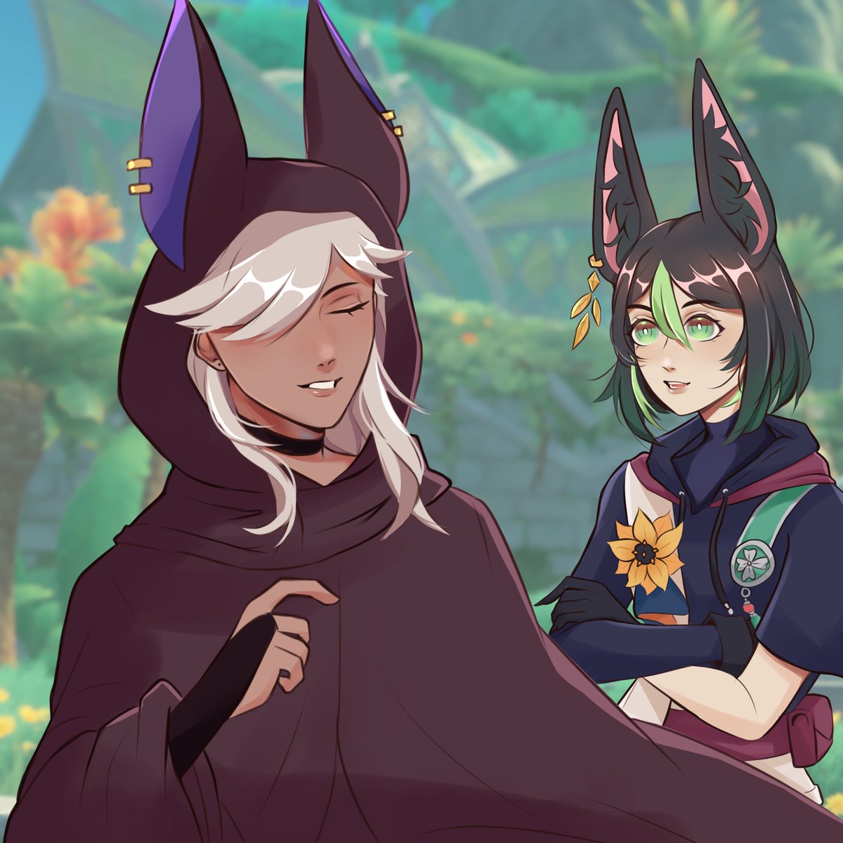 been playing overwatch with my gf lately so i drew the boys!! cyno can’t aim but tries his best to support his bf (aka that’s what i do for my gf lol) #GenshinImpact #cynonari