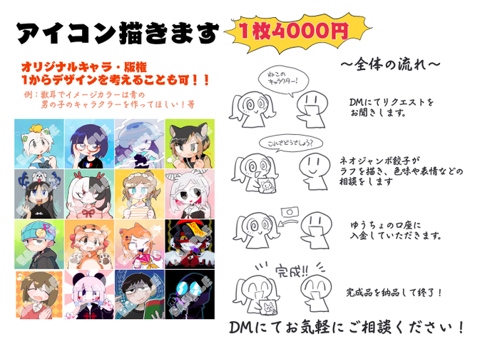 🥟アイコンコミッションしてます🥟 (画像内に今まで描かせていただいたイラストを使用しています、ご依頼ありがとうございました!)