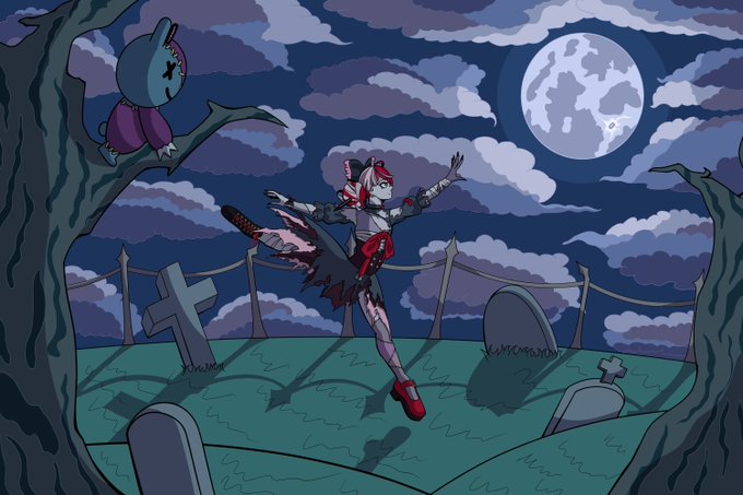 Happy halloween and a late happy birthday to the zombie idol that keeps giving me my best composition ideas :D A small artist like me shouldn't bother with things this complicated, but I won't let logic stop me. So here's a regular day in the afterlife of Ollie ^^ #graveyART