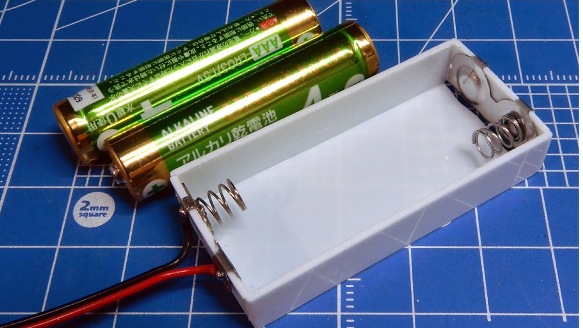 電池を組み込みました^^ プラ板で電池ボックスを箱組して、オモチャから外した接点を取り付けます 底面に電源スイッチを付け、電池はお尻の傾斜に合わせて斜めにセットしています6 これでケーブル無しで走行可能になりました(^^)/ twitter.com/i/web/status/1…