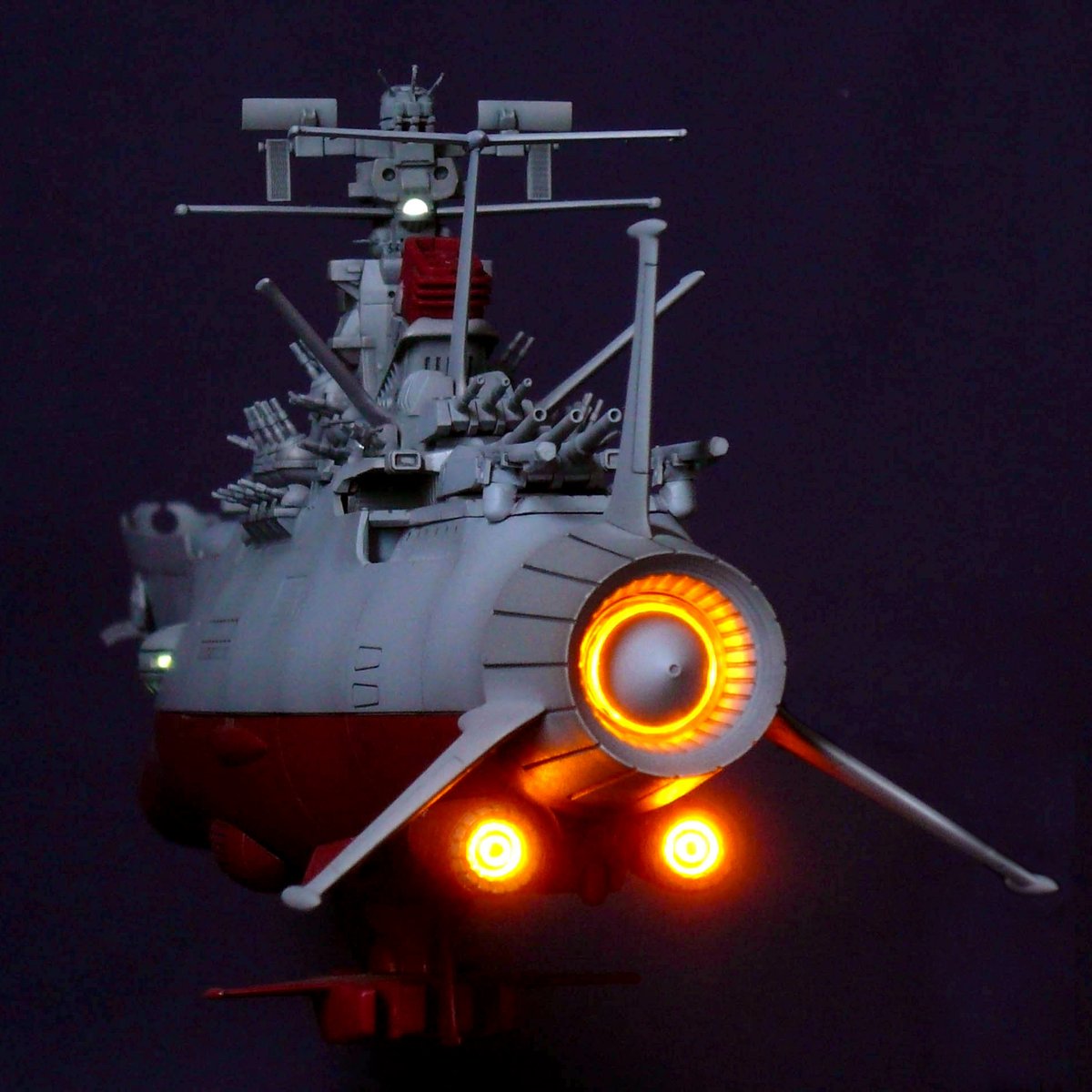 #なんでもいいから自分がフルスクタッチビルドだと思う作品をあげようぜ 宇宙戦艦ヤマト 反射衛星砲 設定資料を元に、オモチャやケースを利用して、ヒートプレスしたプラ板とパテで造形してます 今なら3DPでもっと楽に作れそうだけど、これは作ってる感があって楽しかったです(^^)o