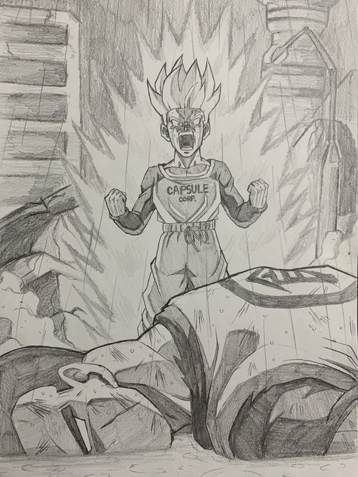 髪爆発身勝手 あ、これ描き初めでした!! #ドラゴンボール #DragonBall