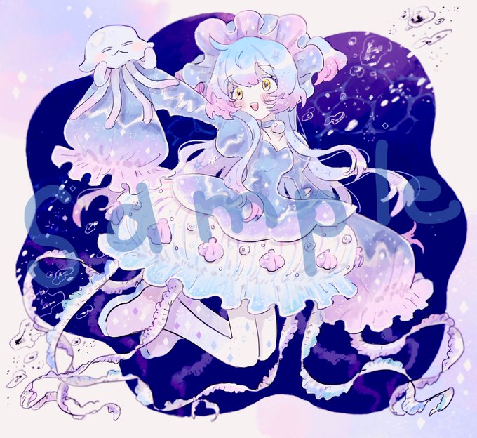 skeb納品しました〜❣️🐚 わたしなりのくらげイメージのお洋服も描かせて頂いたんですが喜んでもらえたらいいな…🌷 素敵なリクエストありがとうございました❣️ #skeb