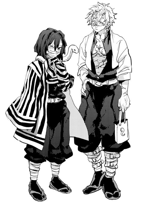 偶然おば描いてた‼️すごい おめでとう 何も考えず🍃に🐍ご飯持たせたけど おばへの誕プレということにしよう 照れ🍃に照れ🐍 なかよし #伊黒小芭内誕生祭2022