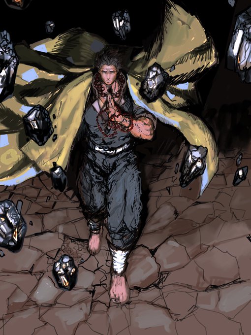 リクでかっこいい📿を描かせていただいた 右下に石ツブテでも置きたいな