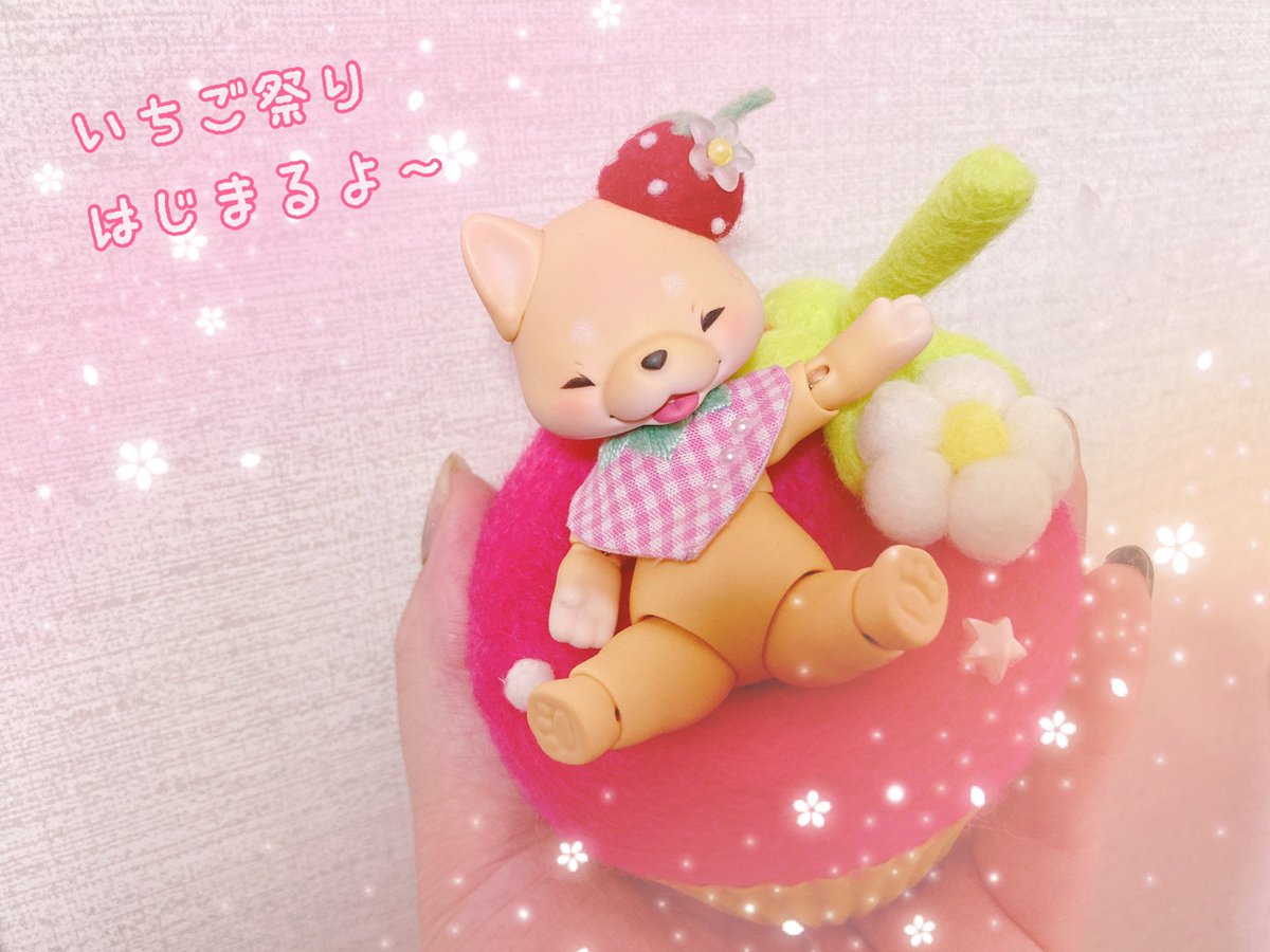 今日の朝活で何とか出来上がり❣️ 今年もかやさちゃんといちご祭り🍓 🌸かやさちゃん→16日 🌸dot.70→17日 カートオープンです🥰 dot.70はちょこぺた、カップケーキソファー、スタイをご用意させて頂きました。詳細は夜か明日に… 宜しくお願い致します🙇♂️ #cocoriang #羊毛フェルト