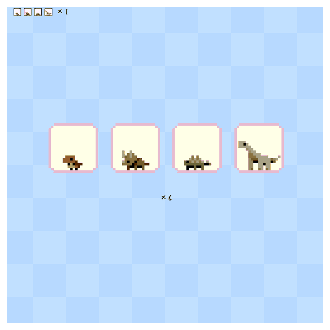 11 52 チビ恐竜たち ティラノ / トリケラ / アンキロ / ブラキオ #Pixelart #Dinosaur #ドット絵 23/06/18 21:35