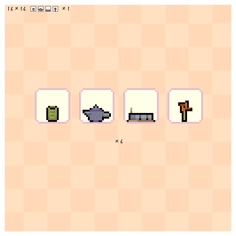 6 42 お茶系のもの(黒い棒みたいなのは「ういろう」でッス) #Pixelart #ドット絵 23/06/14 18:15