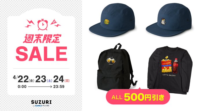 #SUZURI で週末限定セール最終日です😄 ロングスリーブTシャツ、ジェットキャップ、バケットハット、リュックの4つがALL500円引き‼️ 24日(日)23:59まで🚗☀️ セール中のアイテムはこちらから👇 suzuri.jp/shibairo02?fil… この機会にいかがでしょうか😊 #suzuriで販売中 #ドット絵 #pixelart