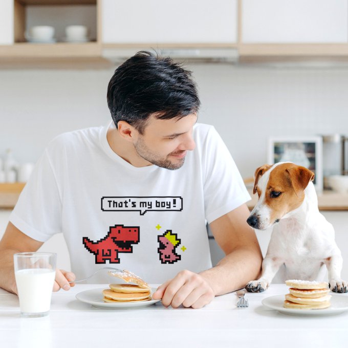 #ClubT #SUZURI にて新作の紹介です😆 #自慢の息子 恐竜好きなお子さんと一緒にどうですか🦖👏 clubt.jp/sp/product/869… suzuri.jp/shibairo02/989… #恐竜 #子ども #ティラノサウルス #ドット絵 #pixelart #オリジナルTシャツ #SUZURIのこれみて