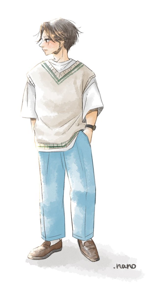 2 26 全身描くのが久しぶりで、 バランスがぁぁぁぁ…… #イラスト #イラスト好きな人と繋がりたい #オリジナル #お絵描き #男の子 #水彩 #私服着てもらった 23/05/13 01:42