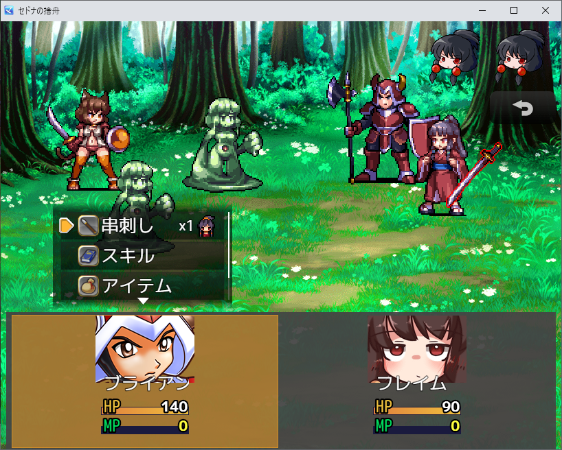 #プレミアムツクールデー プラグインをお借りしながらMVで短編RPG作ってます。 敵が落とすアイテムを装備して敵の能力をコピー出来るシステムが特徴かも。 近日中は多分無理なので来年春までに完成したらいいな!