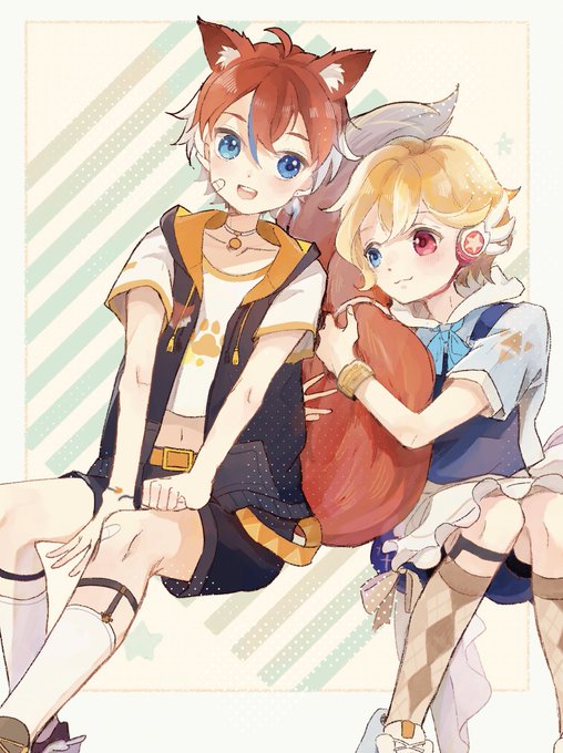 赤キツネ少年🦊と尻尾を抱きしめる男の子 #Skeb