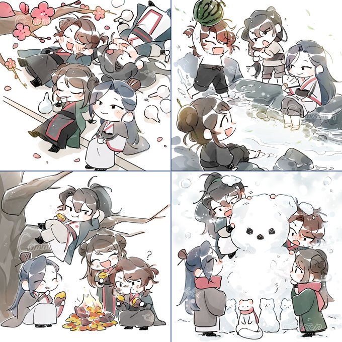 청자배 4인 오마카세 추가로 더 신청 넣어주셔서 장문, 장로 청자배의 사계절을 그려보았습니다. 개인적으로 정말 즐겁게 작업했어요. 신청 감사합니다😊💕 twitter.com/dotoll_/status…
