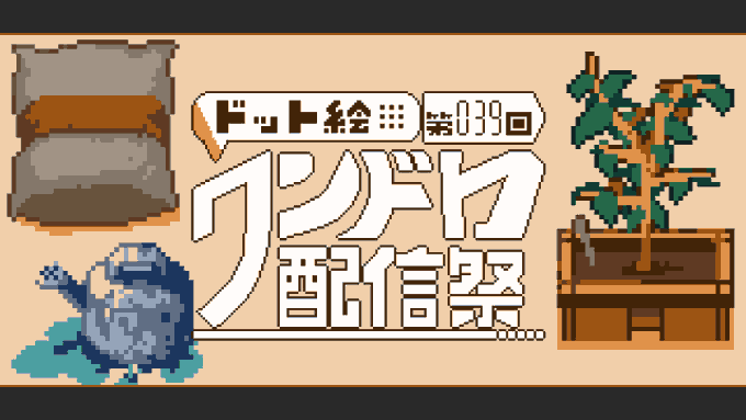 【第39回ドット絵ワンドロ配信祭】 1.説明会・雑談開始 2.19:59Youtube生配信でテーマ発表 3.20時ワンドロ開始 4.終了後『#ドット絵ワンドロ配信祭』『#1hPixelLiveFestival』でTweet ▼配信はこちらから youtu.be/SltClVtbgbg #pixelart #ドット絵