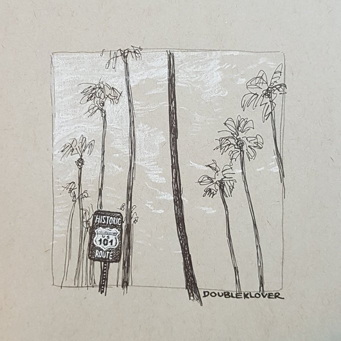 @Inktober 7th Here's that feeling of missing again, even though you're not there anymore 💙 (Encinitas, CA) #inktober #inktober2020 #fineliners #doodle #sketch #sketchbook #drawing #art #encinitas #encinitascalifornia #encinitasca #california #beach #palmtrees #hisroticroute101