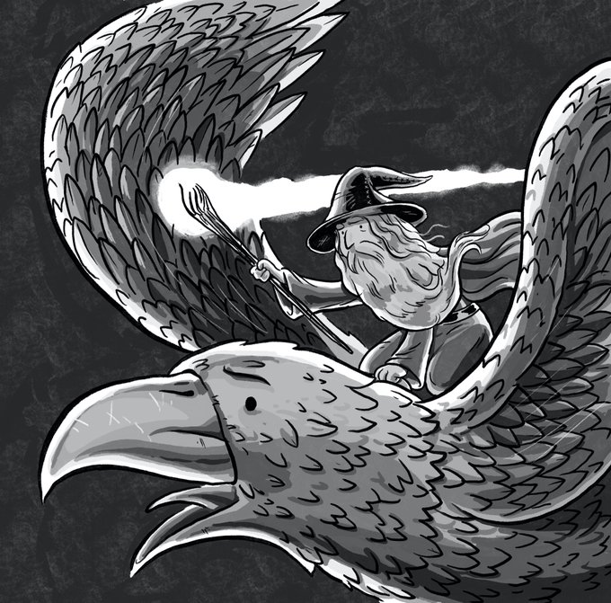 Gandalf and Gwaihir. Not really doing #inktober this year, but will probably still make a few new drawings. #inktober2020 #art #lotr #lordoftherings #gandalf #gwaihir #illustration #kidlit #kidlitart #blackandwhite #blackandwhiteart #drawing