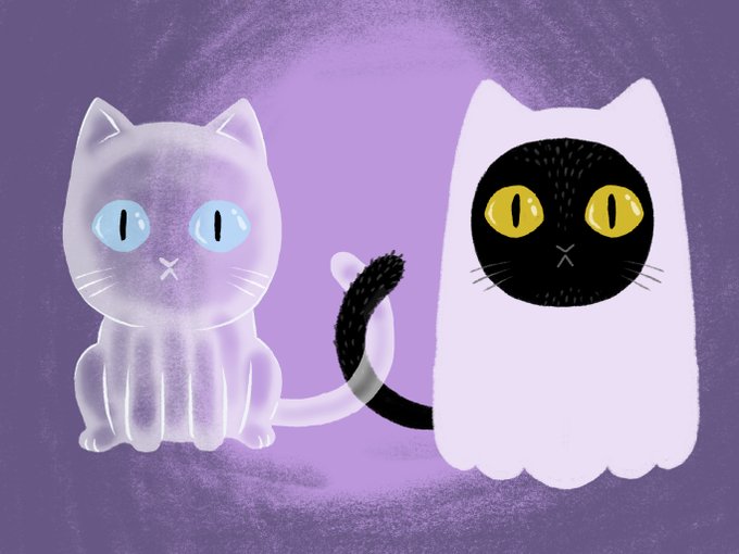 Cat-ghost and Ghost-cat. Best friends. #kidlit #kidlitart #ghostcat #catghost #illustration #childrensbook