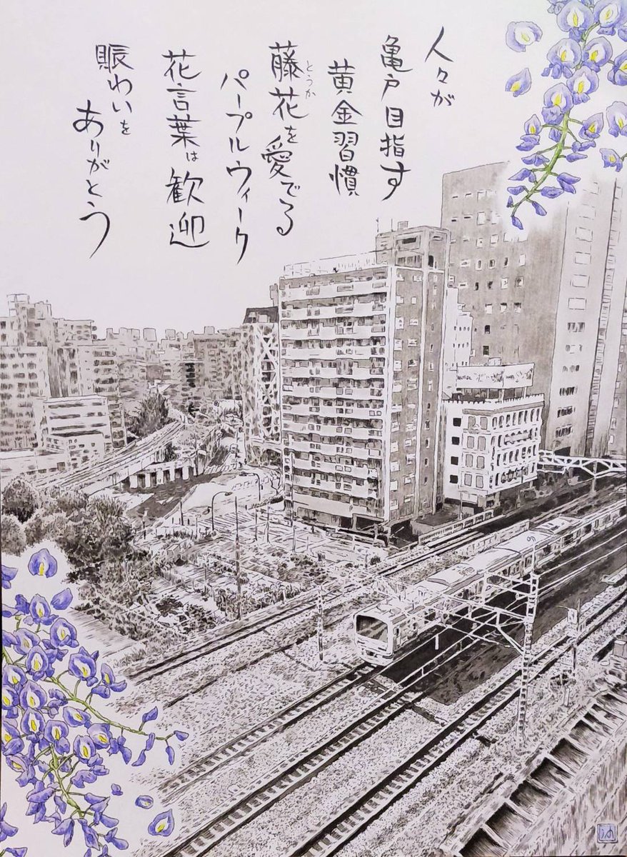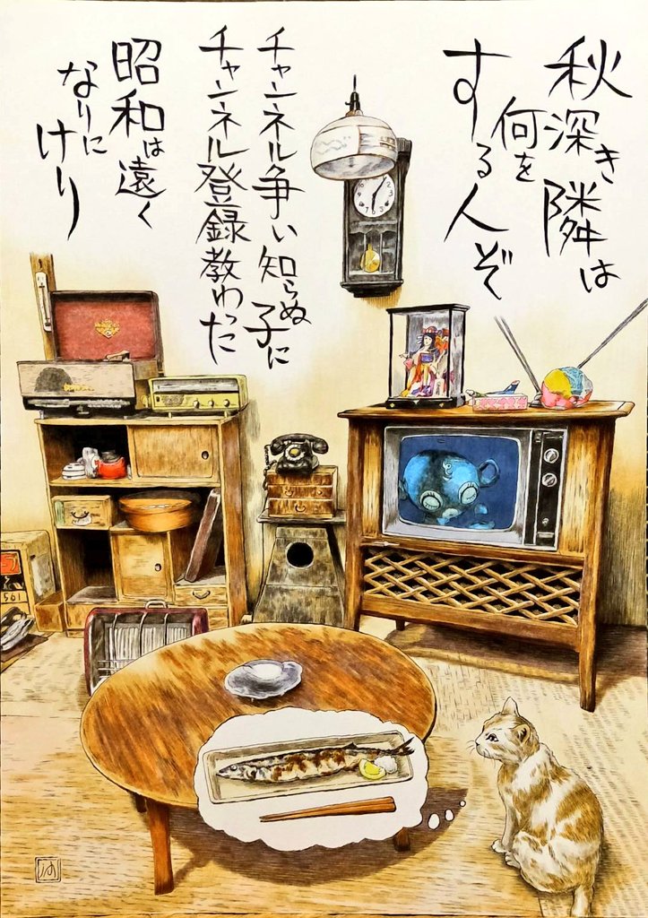 江東区芭蕉記念館にて開催されてる「俳画の楽しみ」展、本日より展示開始した絵がこちら😆 原画を見にきてねー🎵 #イラスト #illustration #俳句 twitter.com/doujunkai_m/…